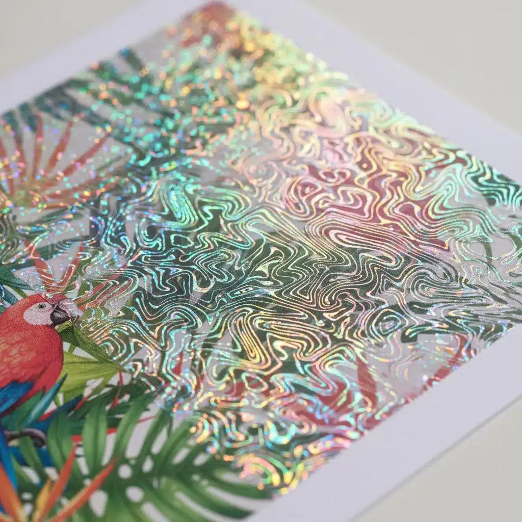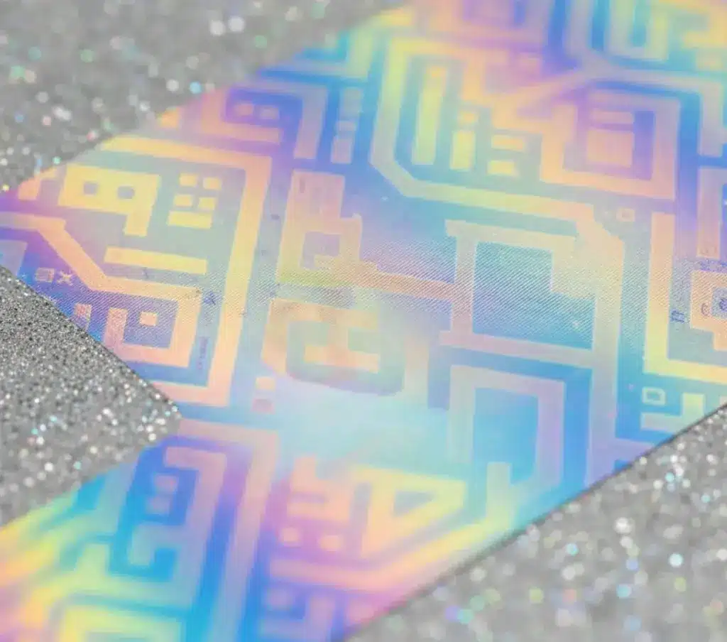 Holografische folies kunnen worden gebruikt om drukwerk extra cachet te geven.